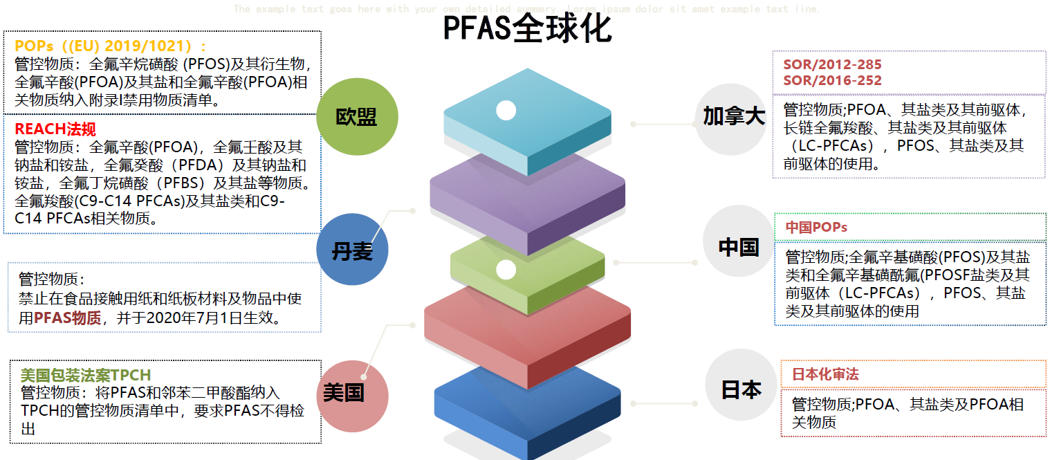 以下是国内外欧盟美国加拿大日本丹麦中国等国对PFAS管控的要求: